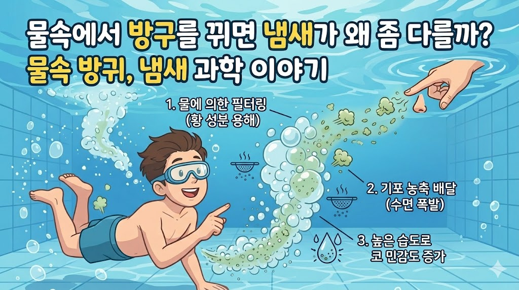 물속에서 방귀를 뀌었을 때 냄새가 평소와 다르게 느껴지는 이유는 과학적으로 몇 가지 흥미로운 물리적, 화학적 변화 때문입니다.
