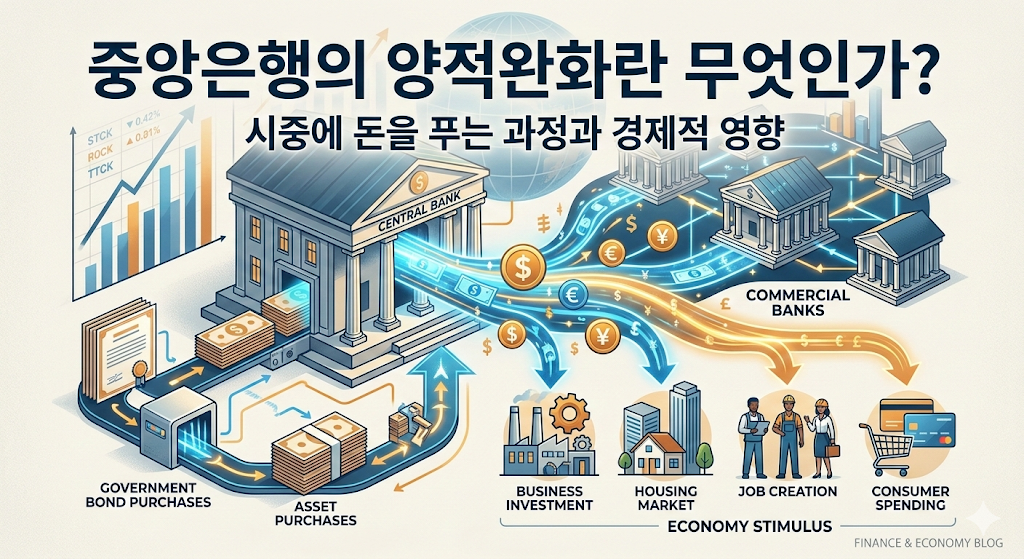 - 자산 매입 결정: 중앙은행이 시중 은행들이 보유한 국채나 주택저당증권(MBS) 같은 안전 자산을 대규모로 사들이기로 결정합니다.